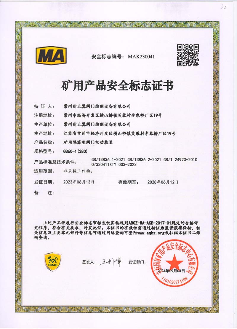 礦用隔爆ZB10-24中國國家強制性產品認證證書110.2